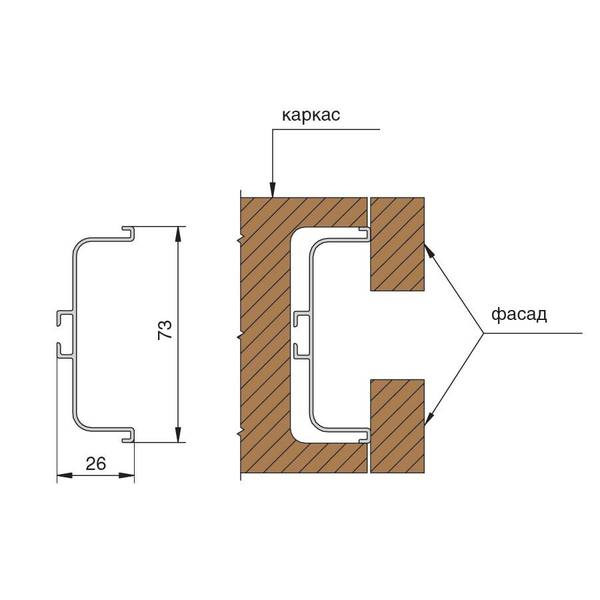 Gola Профиль горизонтальный с двумя закруглениями L=4100мм, отделка алюминий анодированный